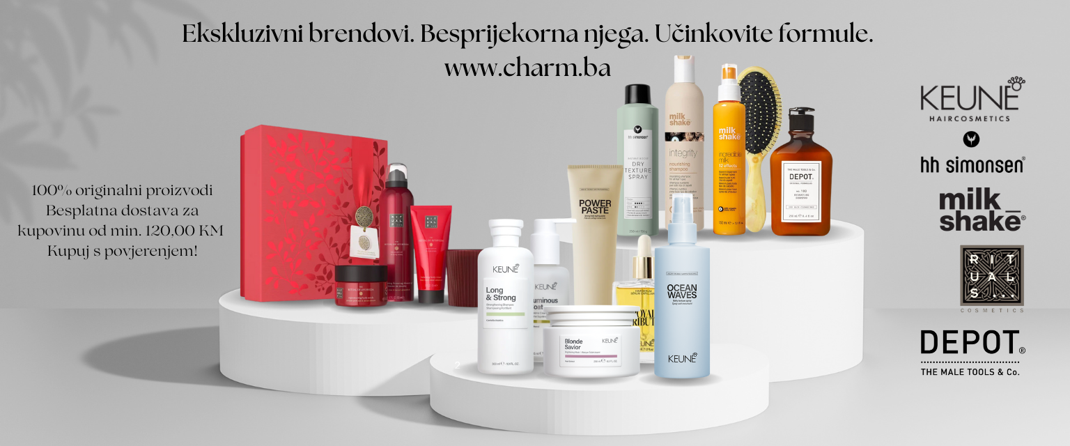 Najnoviji proizvodiProizvodi na akcijiNajprodavaniji proizvodi Uvijek ispred ostalih... Vidi sve proizvode Saloni Charm uvijek idu korak ispred ostalih i svoje usluge svakodnevno digitalizuju i modernizuju. Prvi salon u BiH sa digitalnim sistemom lojalnosti. Charm Loyalty Program Charm Akademija